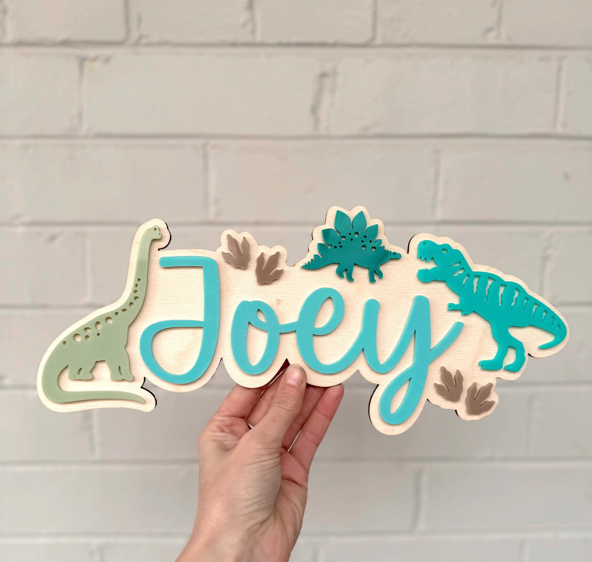 This one-of-a-kind dinosaur-themed name sign makes a great gift and adds a playful element to any custom dinosaur décor.