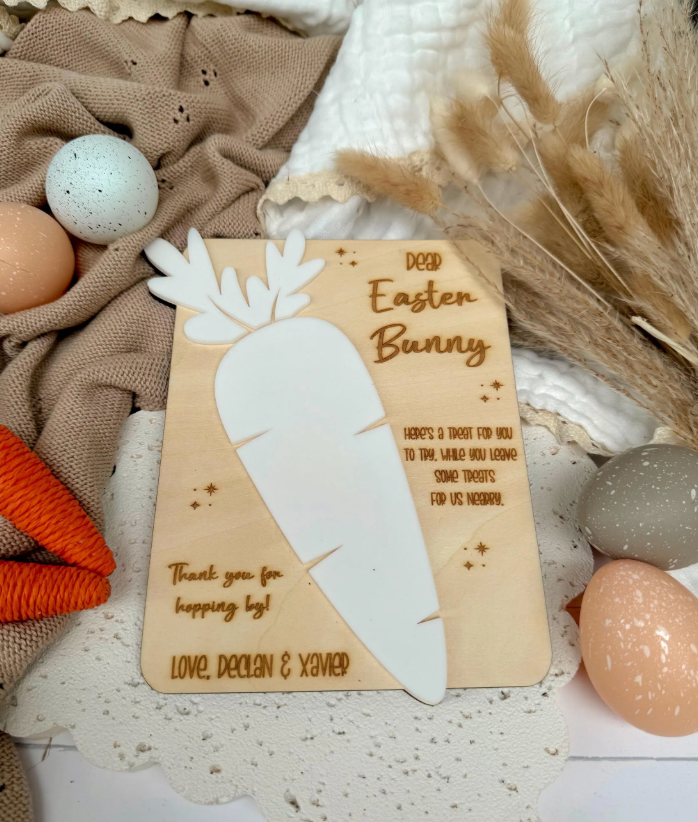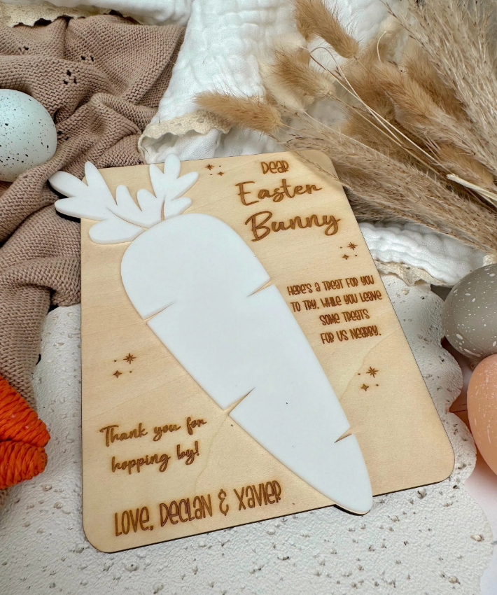 Each tray is personalised to make this Easter tradition extra special. With a designated space for a carrot, your little one(s) will be filled with excitement for the Easter Bunny's arrival and inspired to embrace the joy of giving.
