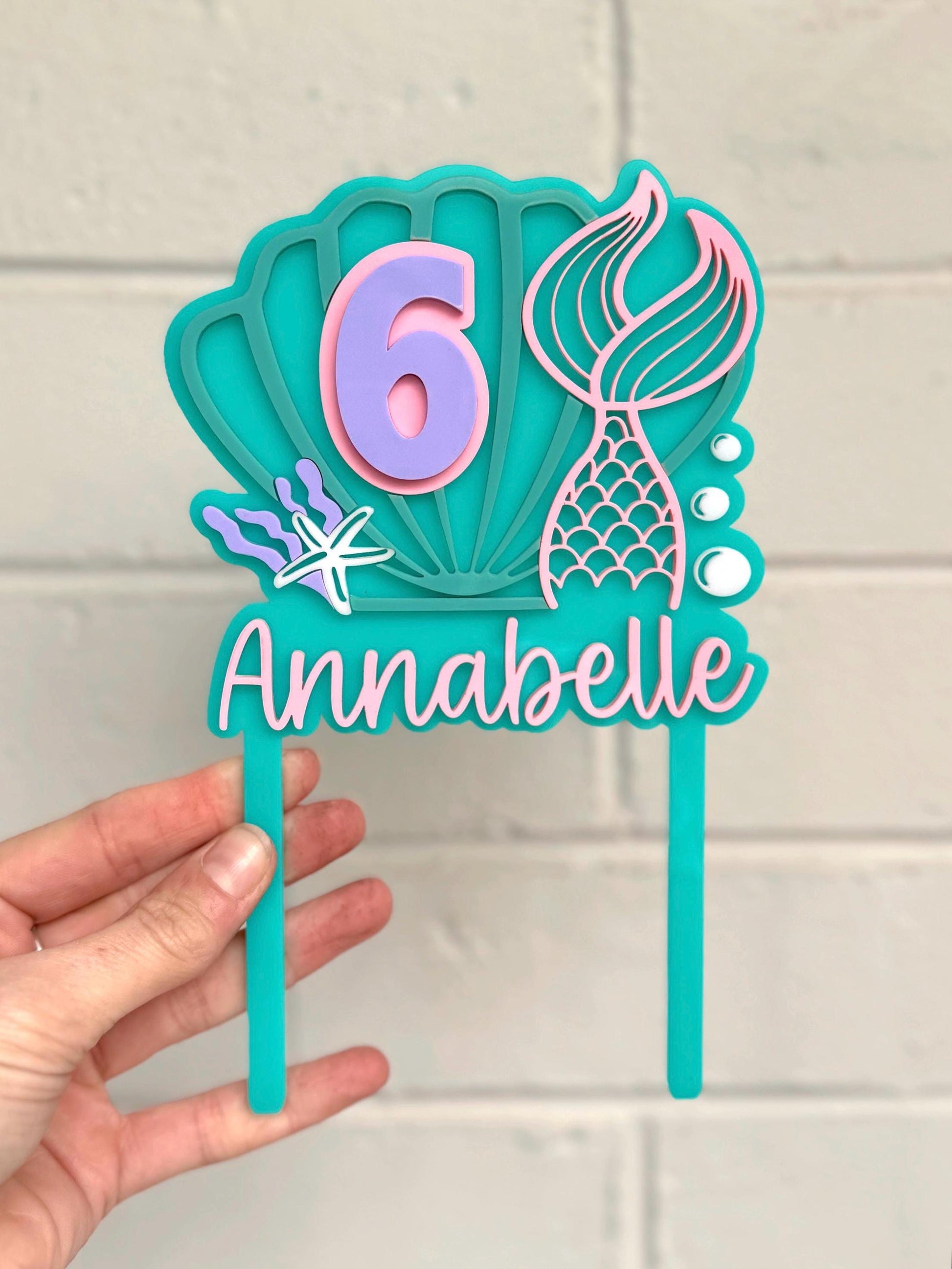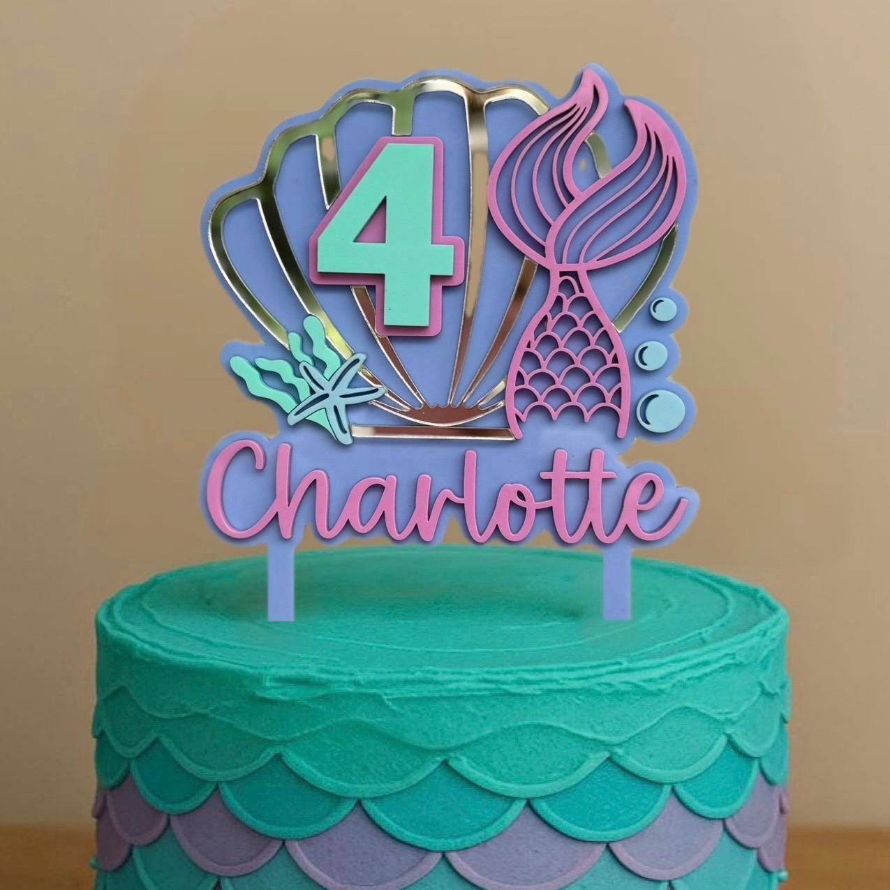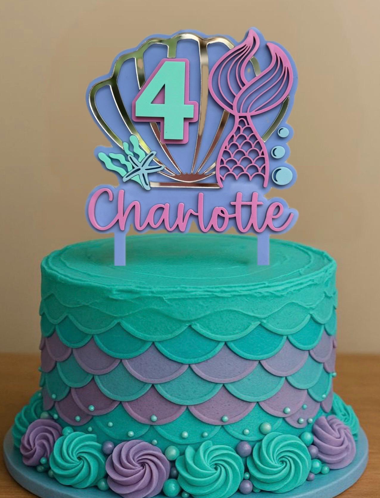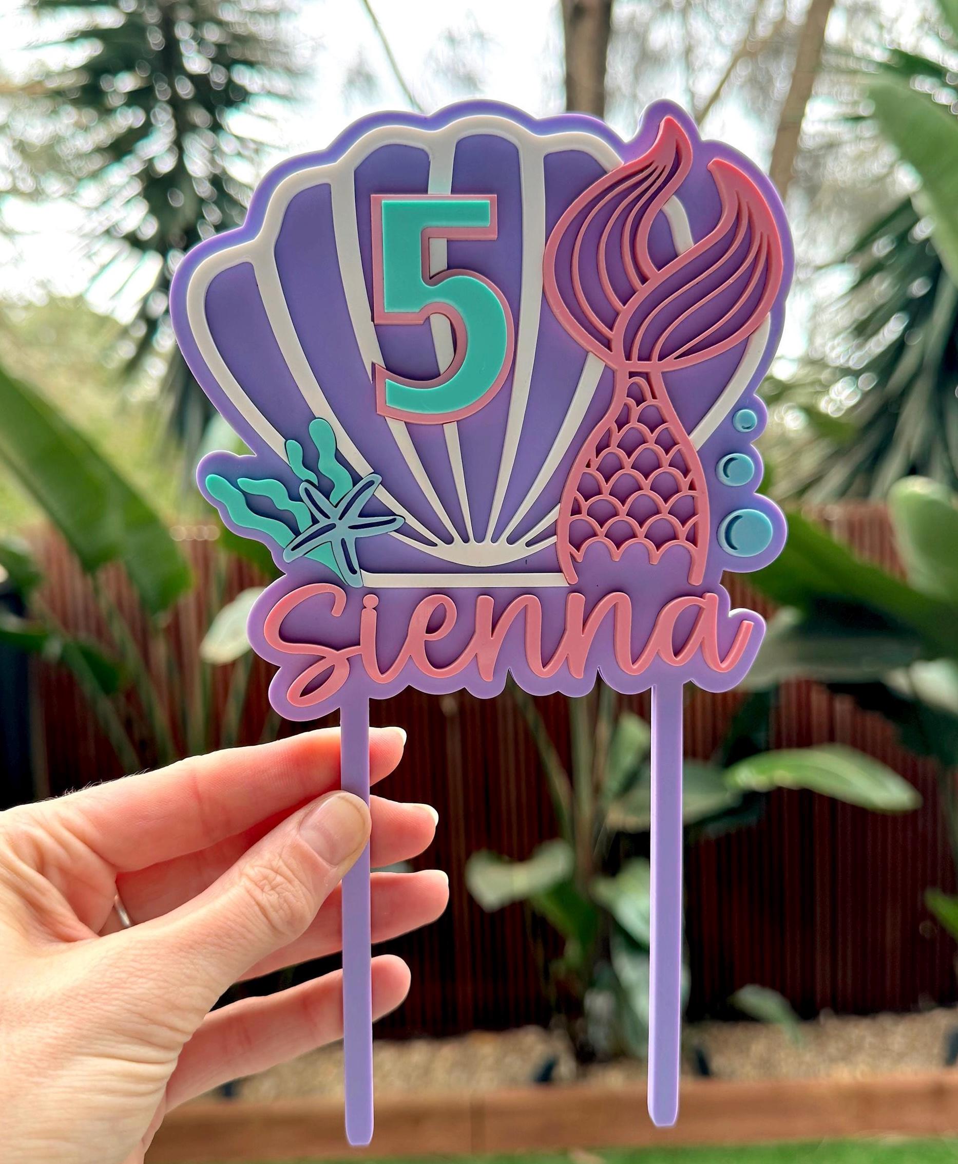 This adorable mermaid cake topper, featuring your personalised name and age, is the ideal finishing touch for your mermaid-themed birthday cake.