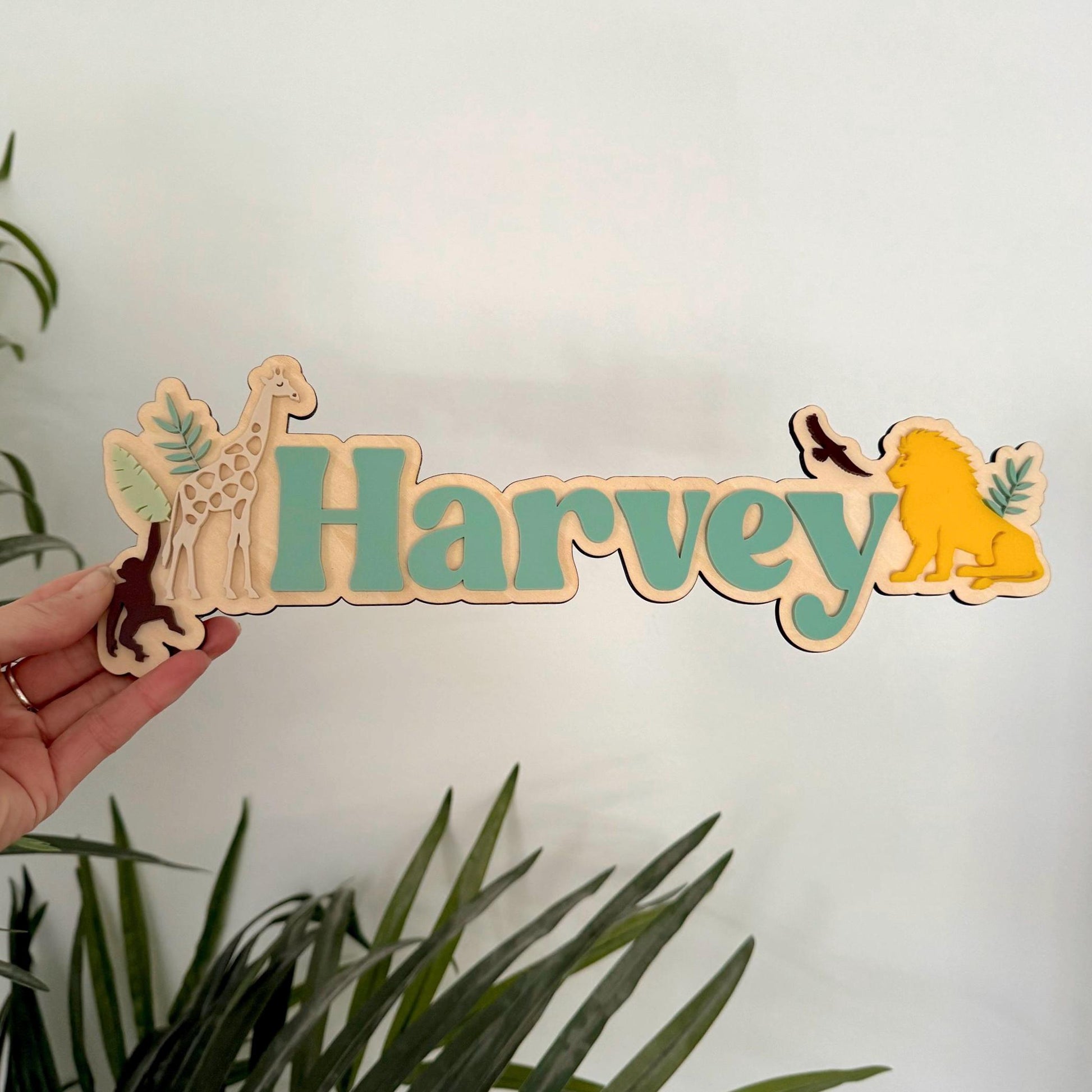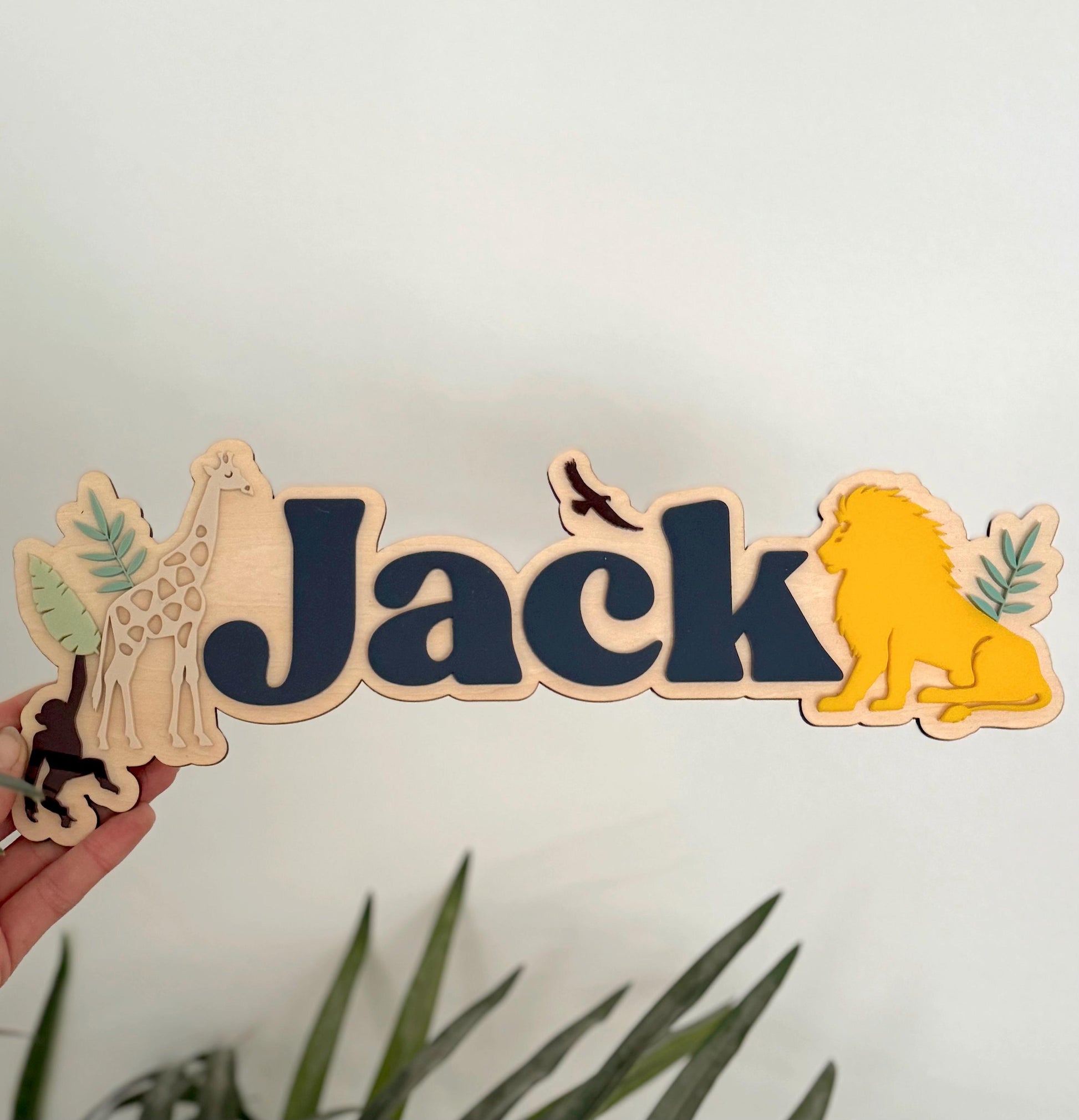 This one-of-a-kind safari-themed name sign makes a great gift and adds a playful element to any custom safari décor.
