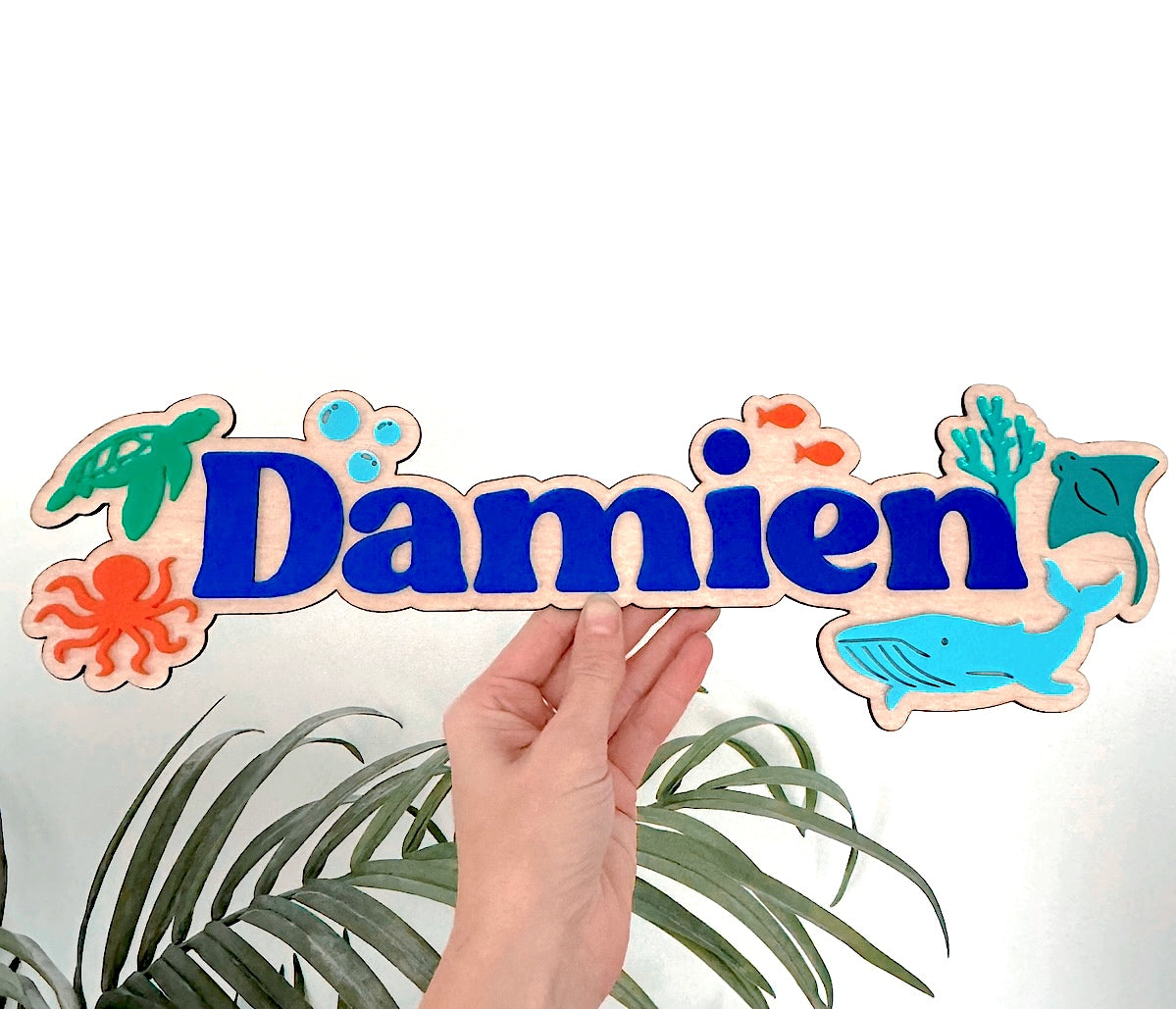 This one-of-a-kind marine-themed name sign makes a thoughtful gift and brings a splash of fun to any underwater-themed décor.