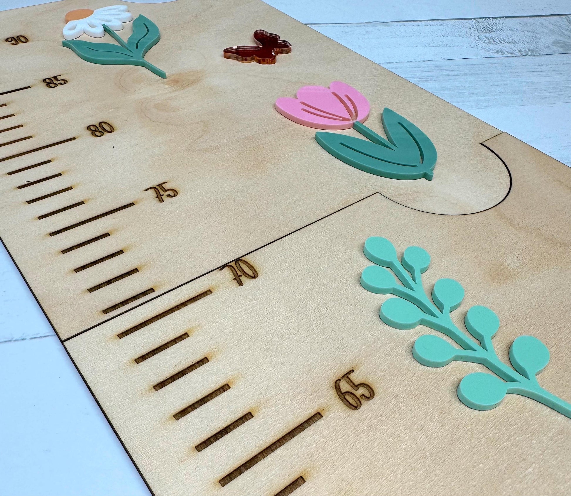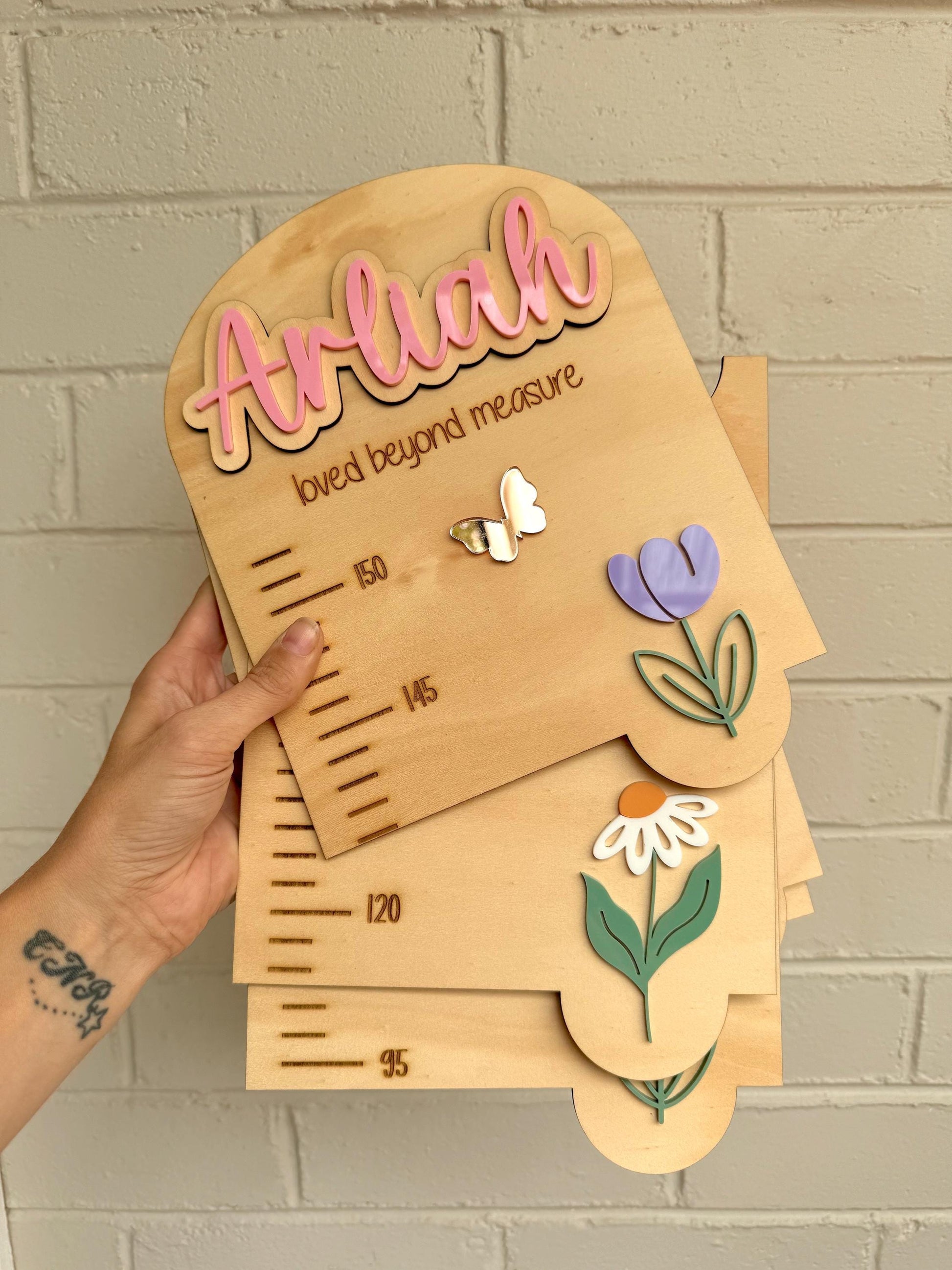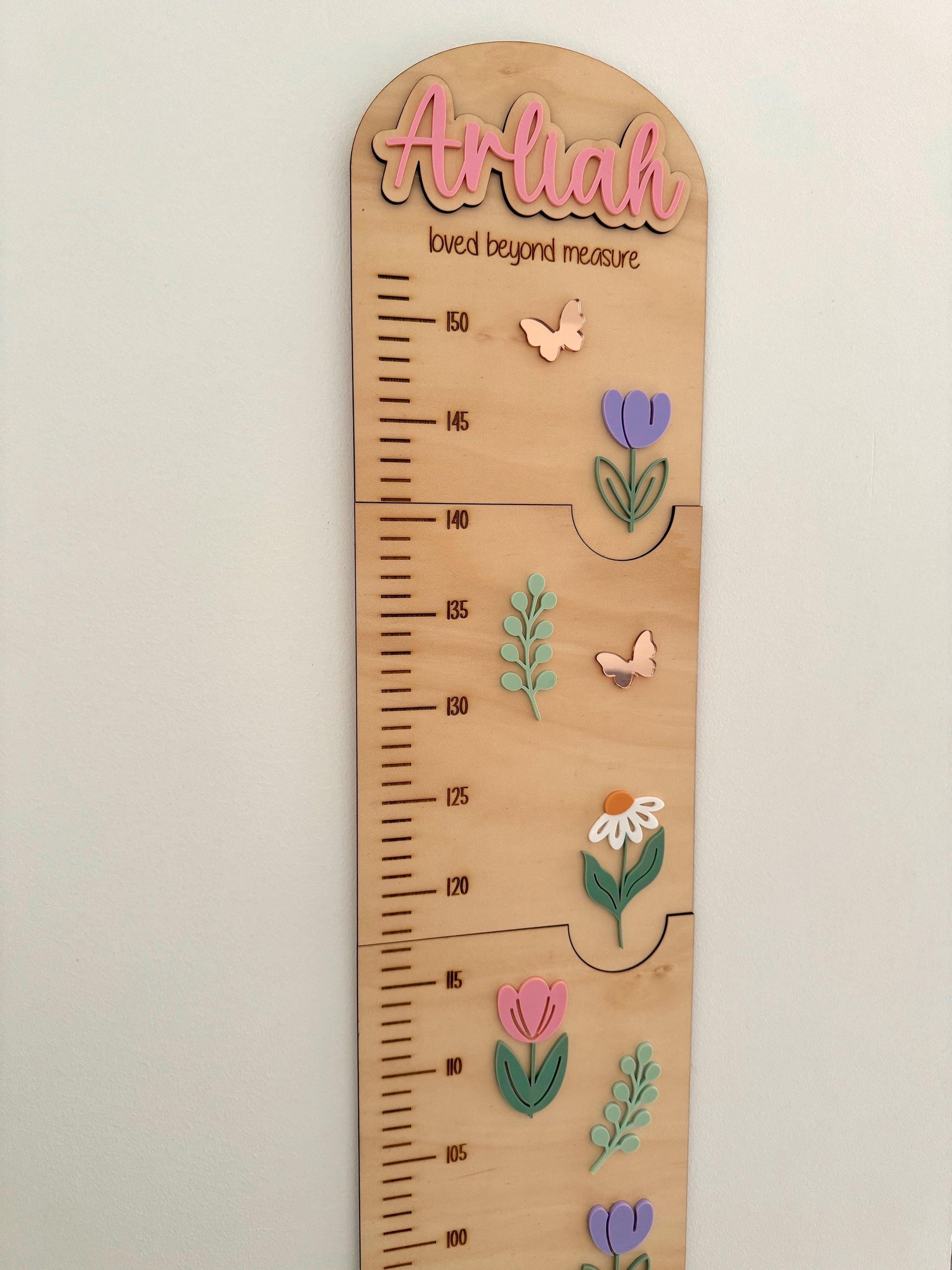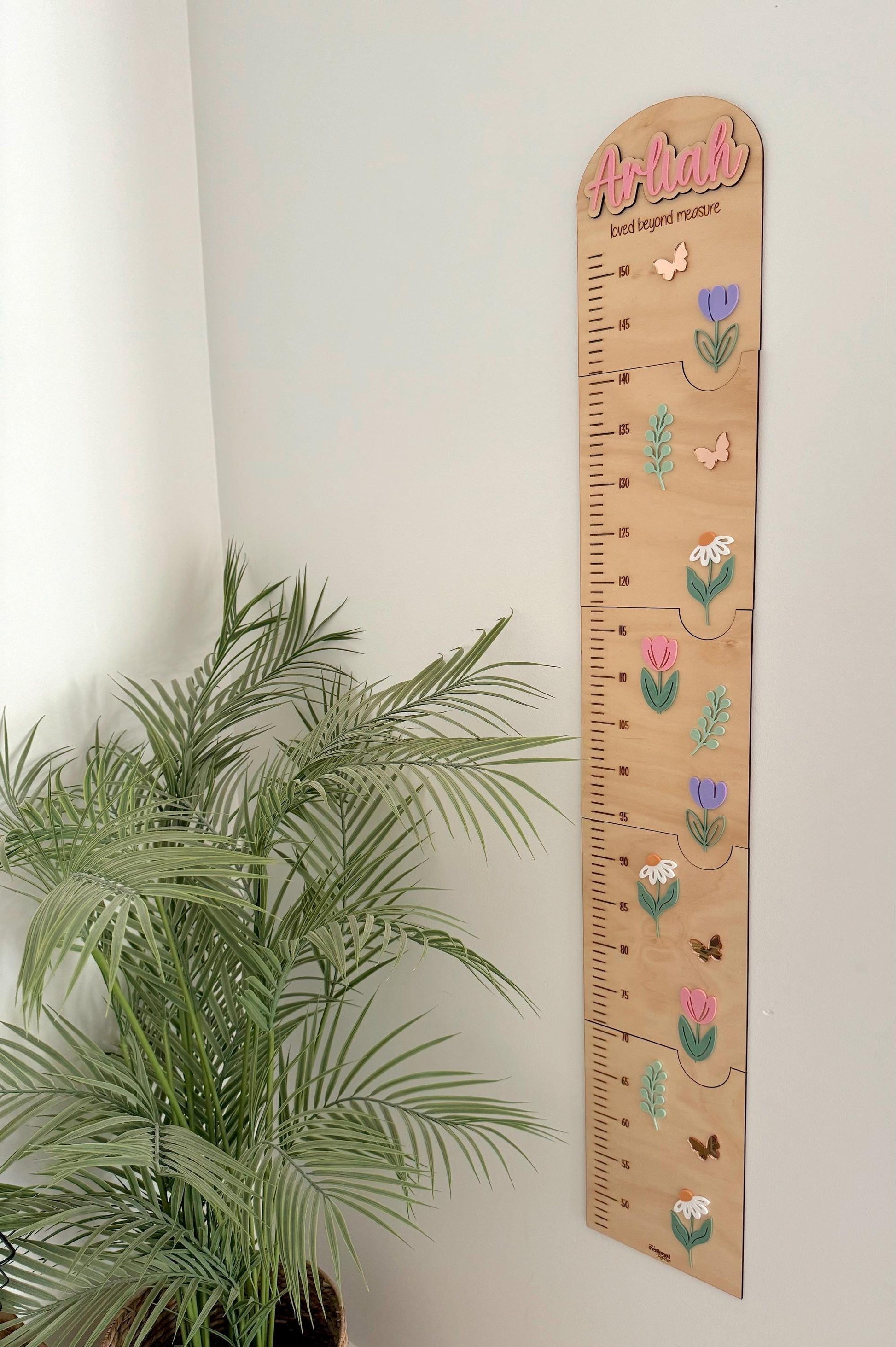 Designed with love and attention, these charts serve as both a practical tool for monitoring height and a delightful keepsake that captures each milestone. Customised with your child’s name, they add a personal flair to their room decor. Featuring colourful acrylic and engraved details, our growth charts make measuring height a fun and engaging experience. Celebrate every inch of their growth with our Pine & Personal Growth Charts.